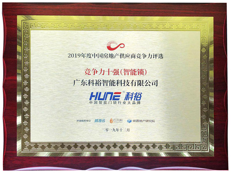 其中,科裕智能門鎖在眾多智能鎖品牌中脫穎而出,實(shí)力榮膺“中國房地產(chǎn)行業(yè)供應(yīng)商競爭力十強(qiáng)”,是行業(yè)內(nèi)對科裕品牌實(shí)力的認(rèn)可和肯定。