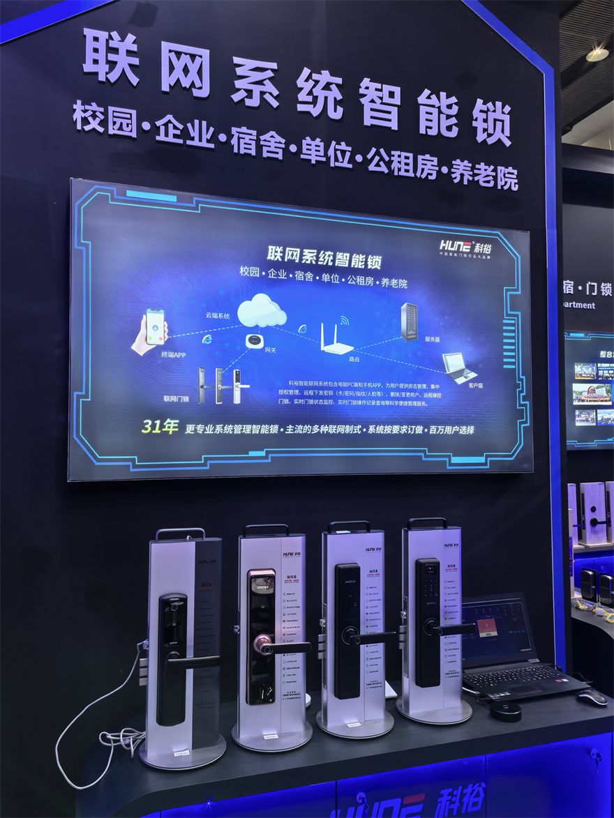 在數(shù)字高速發(fā)展的趨勢(shì)下,科裕31年堅(jiān)持創(chuàng)新發(fā)展,運(yùn)用物聯(lián)網(wǎng)技術(shù)推出聯(lián)網(wǎng)智能門(mén)鎖系統(tǒng),支持、LoRa、4G、NB、藍(lán)牙、WIFI、433等多種智能鎖聯(lián)網(wǎng)方案,實(shí)現(xiàn)了從酒店鎖到指紋鎖,到人臉識(shí)別鎖,再到聯(lián)網(wǎng)智能鎖的飛躍,以及智慧園區(qū)、智慧酒店、智慧公寓、智慧家居等各個(gè)場(chǎng)景解決方案。