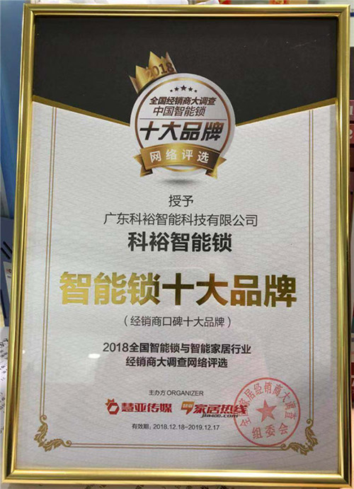 從此次評選活動我們可以看出,科裕智能鎖等作為行業(yè)內(nèi)一線品牌,在市場上得到了消費者的認(rèn)可。