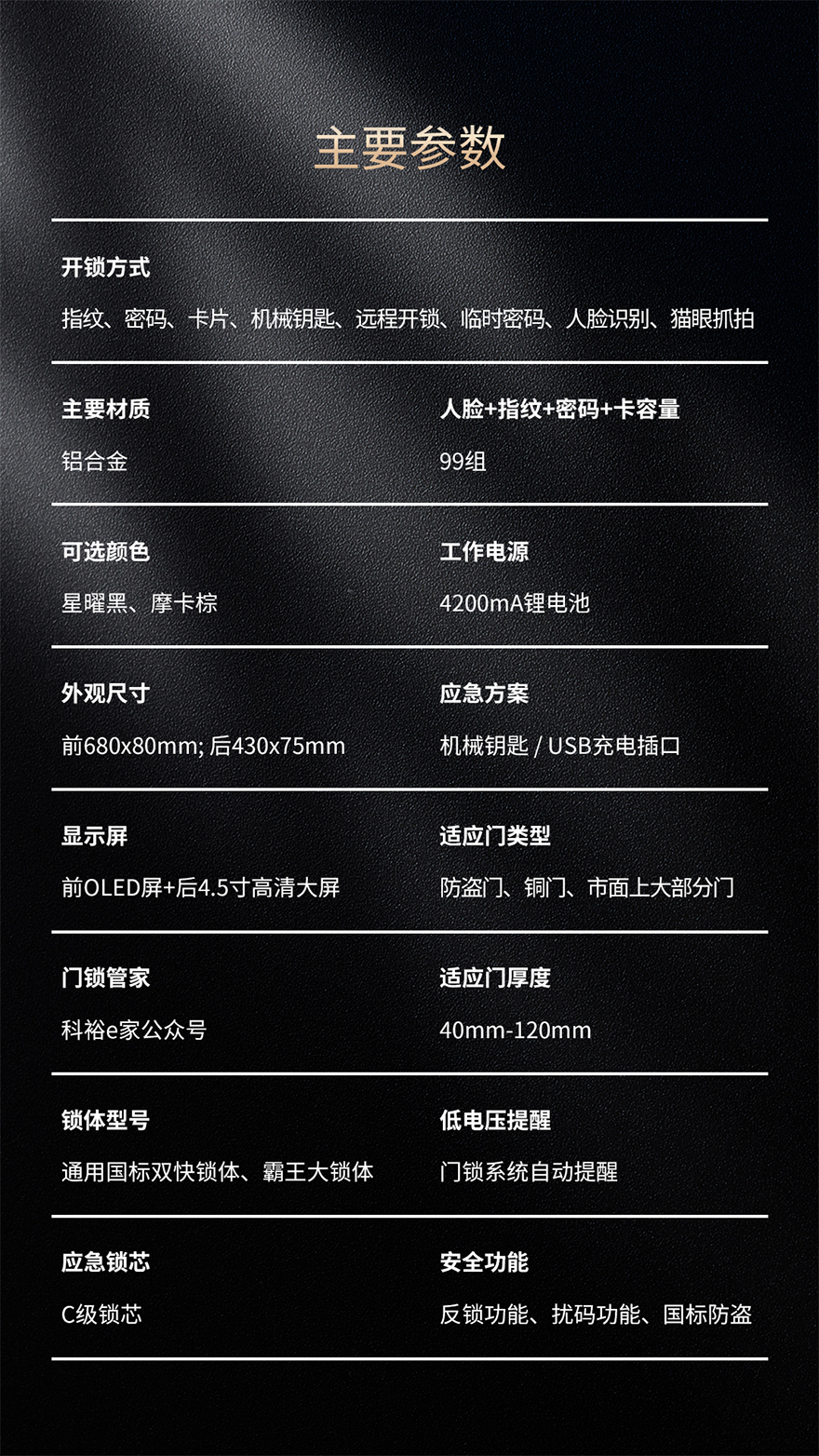 應(yīng)急開鎖:機(jī)械鑰匙,Type-C接口