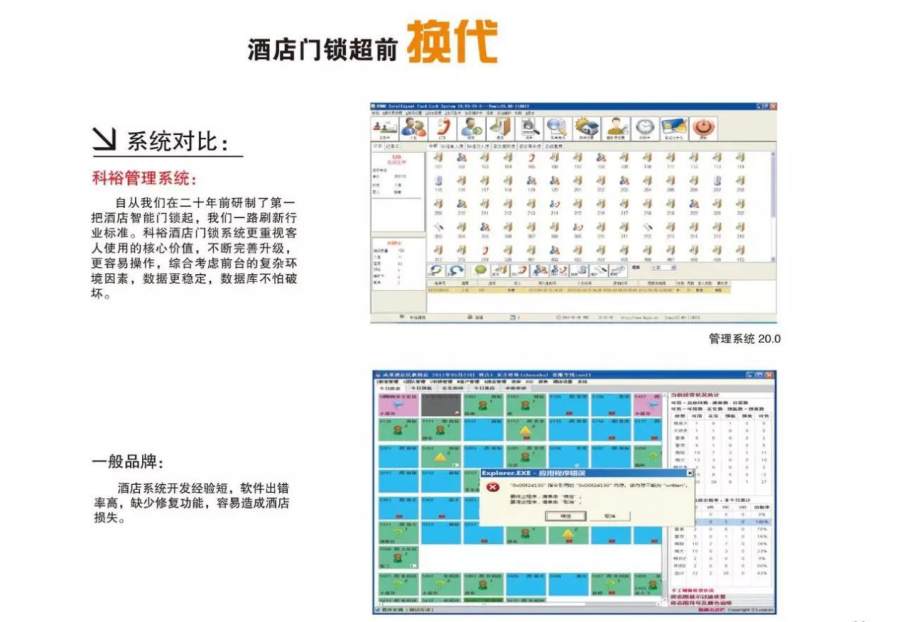 四、【提供數(shù)據(jù)接口與國內(nèi)外酒店管理軟件無縫連接】:科裕酒店鎖管理軟件已與國內(nèi)外大多數(shù)酒店管理軟件成功對接,并獲著名的microsFIDELIO/Operai(德國酒店管理軟件)的對接許可,不會產(chǎn)生因?qū)訂栴}進(jìn)行的軟件維護(hù)工作。