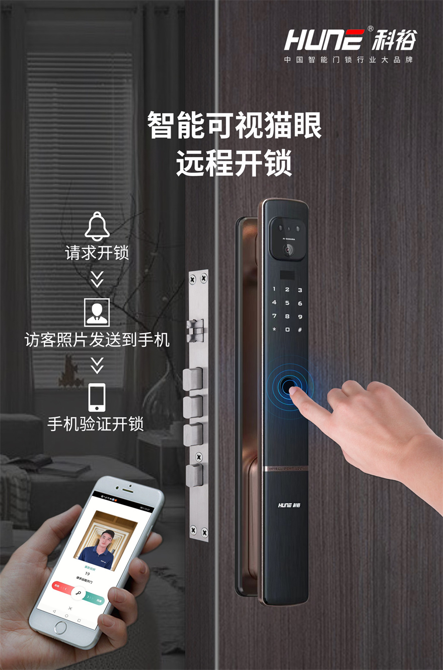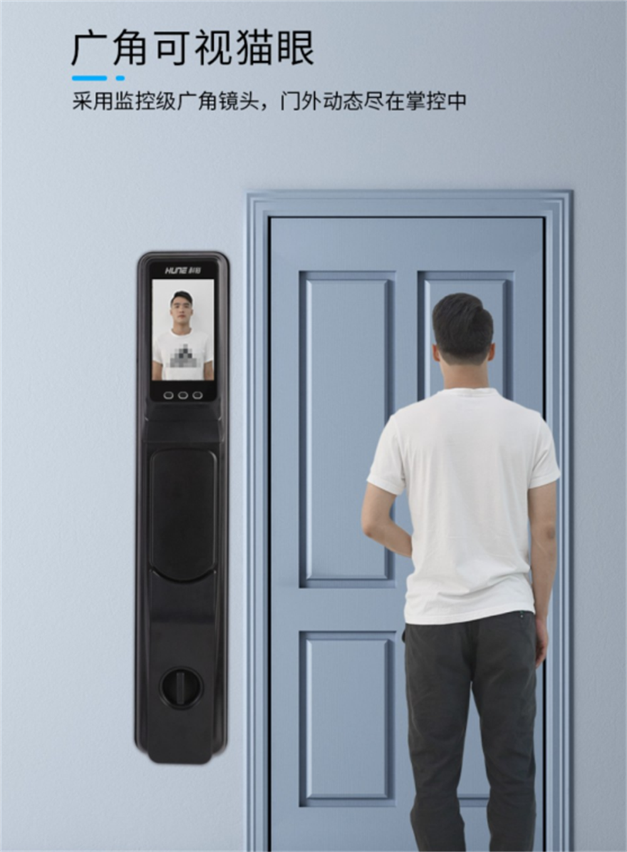 同時(shí),搭載高清攝像頭,其120°的大廣角視野可覆蓋1.2至2米范圍,無需踮腳、彎腰,大人小孩都適用,老人也不用擔(dān)心指紋磨損問題,全家人都適用的解鎖方式。