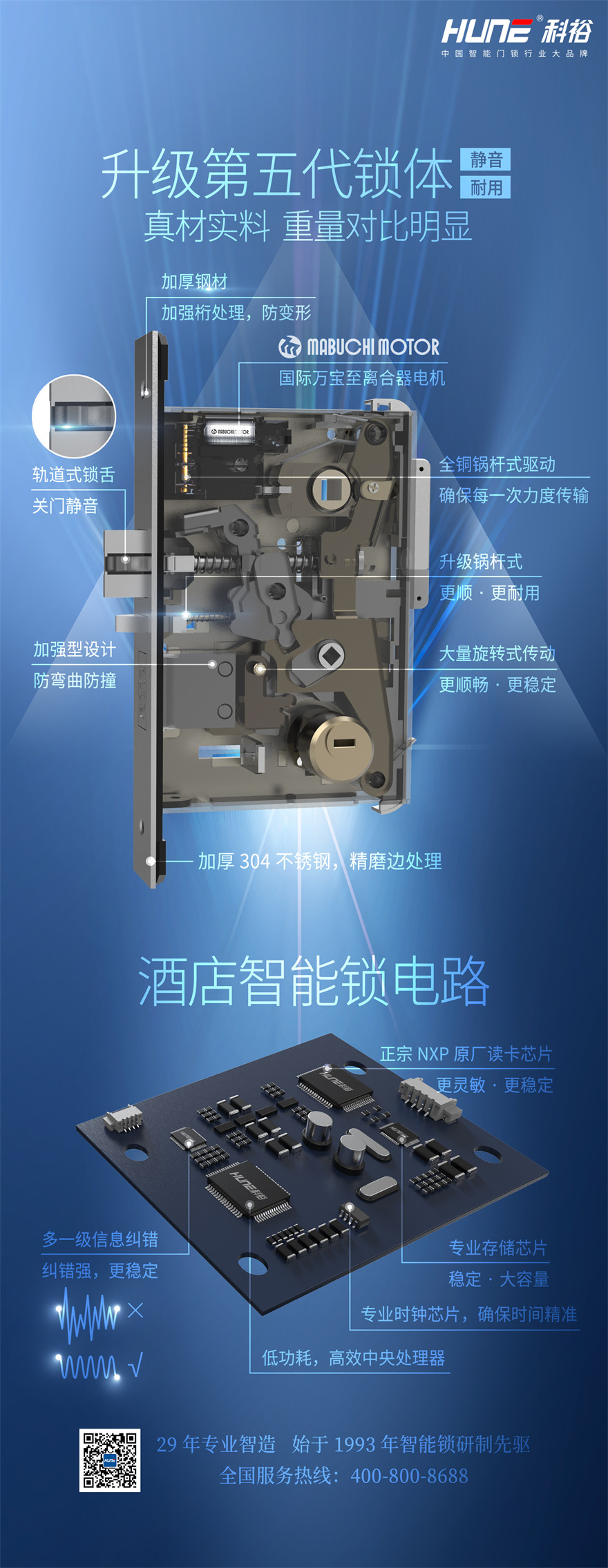 1、加厚加重型美標(biāo)鎖體,全銅鎖芯,國際品牌<萬寶至>精密離合電機,鎖體保修六年;