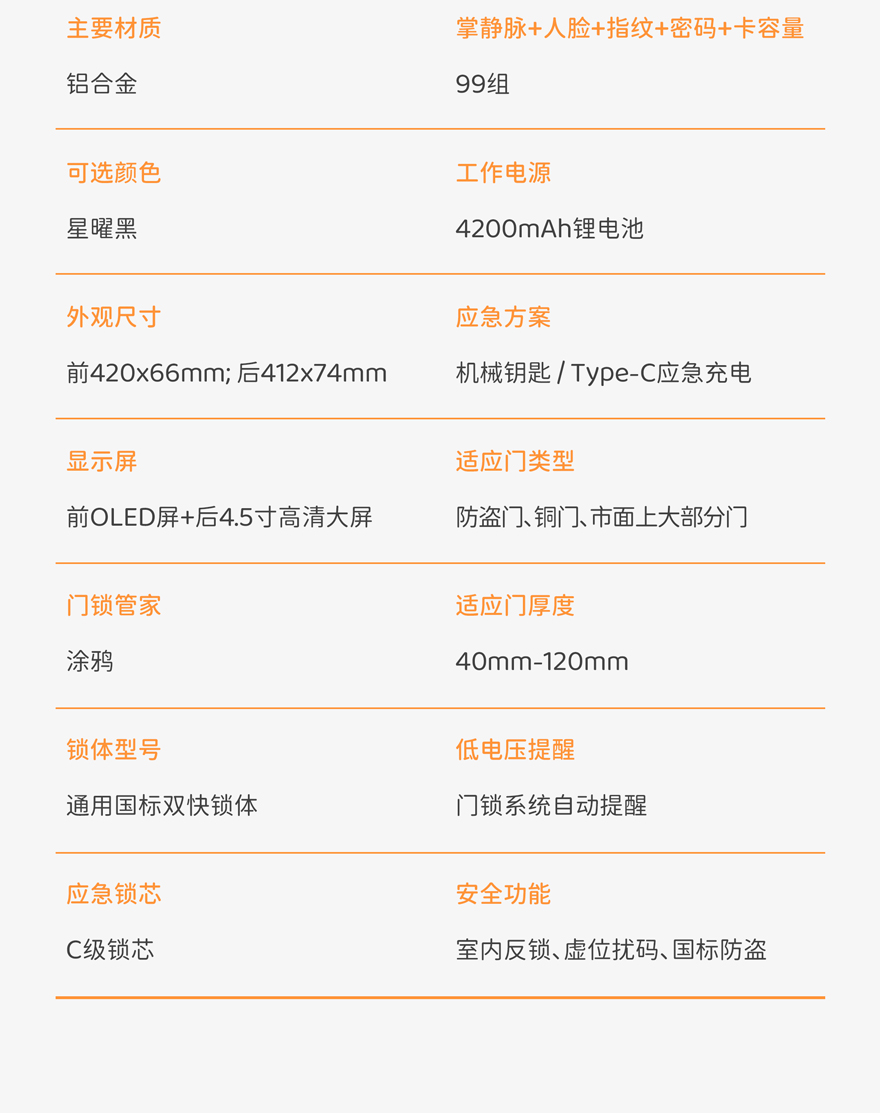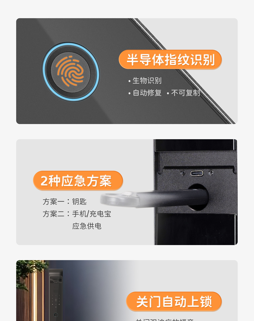 應急開鎖:機械鑰匙,Type-C接口