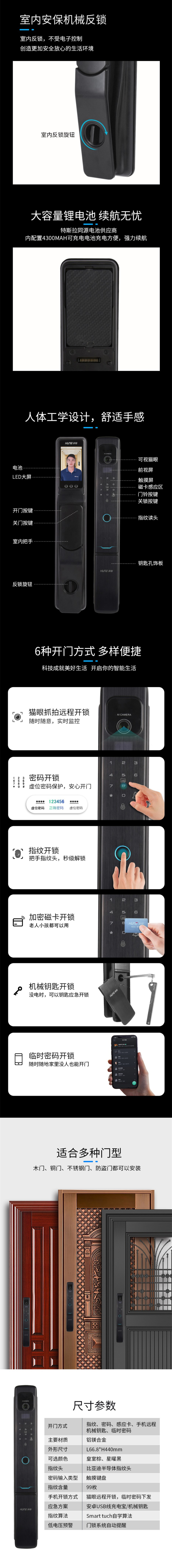 開門方式:指紋,密碼,感應(yīng)卡,機械鑰匙,微信小程序,手機APP