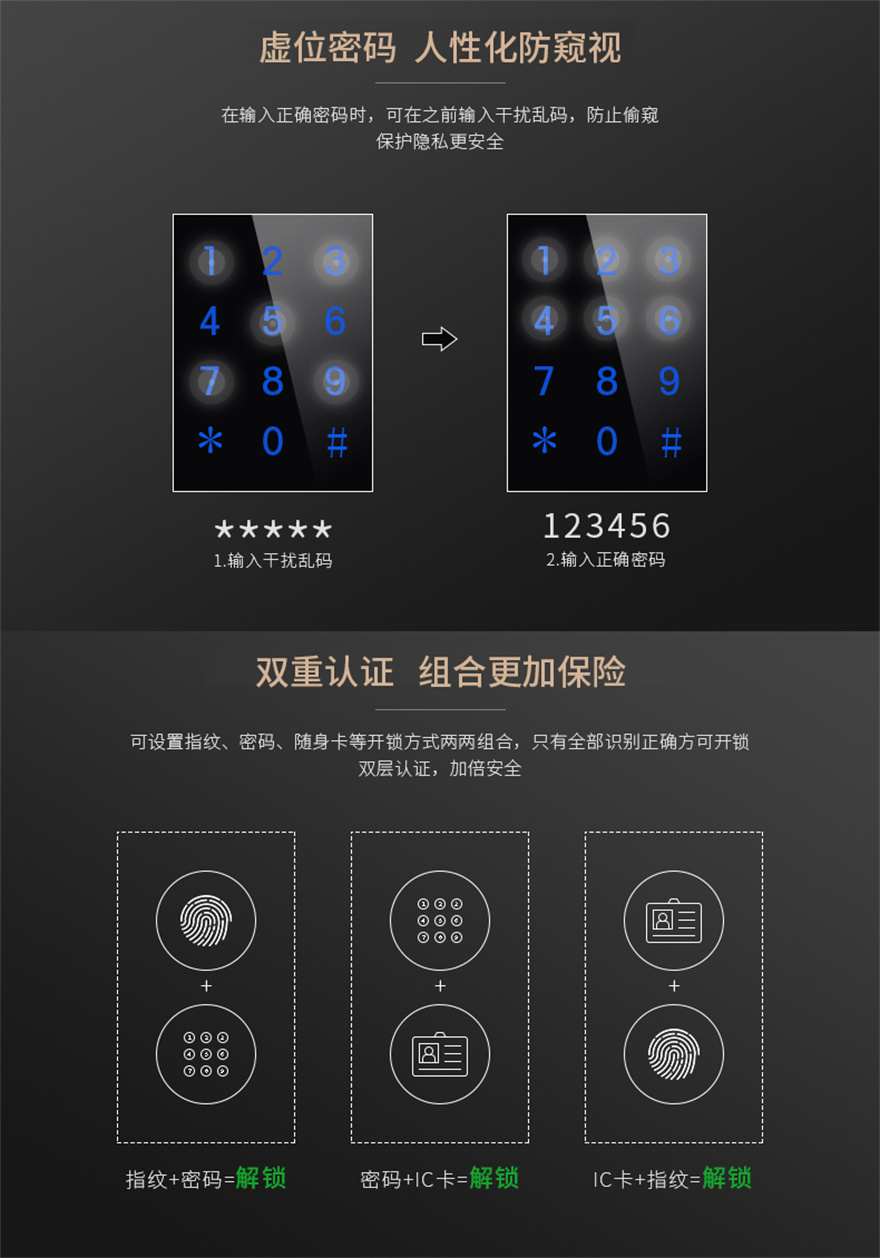 開(kāi)門(mén)方式:指紋,密碼,感應(yīng)卡,機(jī)械鑰匙